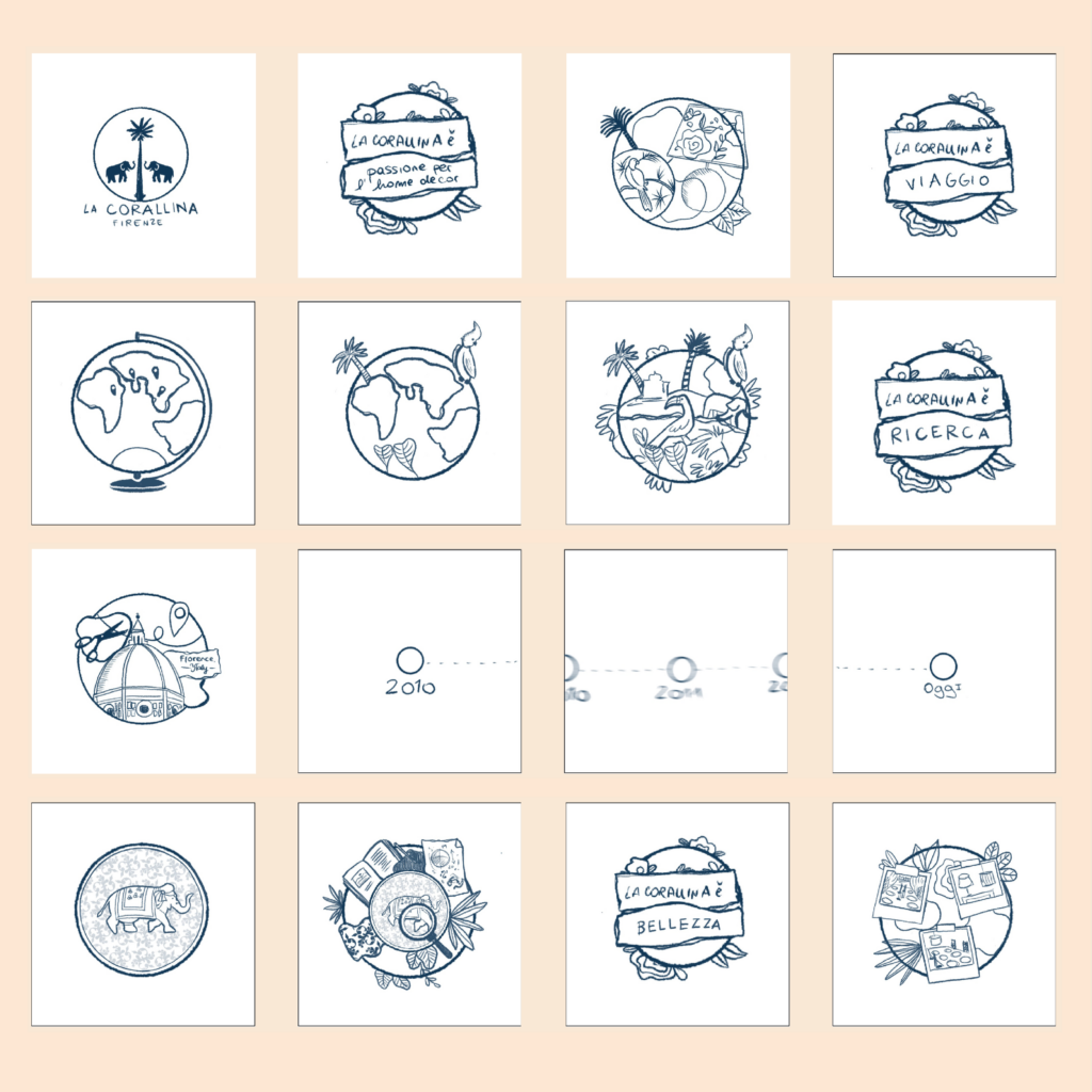 Attraverso una grande ricerca, analisi e definizione dei valori, abbiamo dato vita e consolidato negli anni, a uno stile visivo in cui il brand viene valorizzato e in cui si riconosce completamente. Il tratto distintivo è diventato la composizione collage, composta da ritagli di carta, linee handmade, illustrazioni e atmosfere oniriche, e in grado di trasmettere calore, emozionalità, cura e originalità.